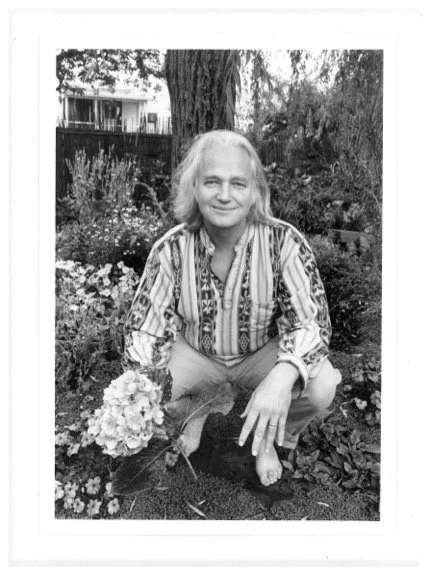 Lex Hixon in his garden in Riverdale, NYC c. 1985