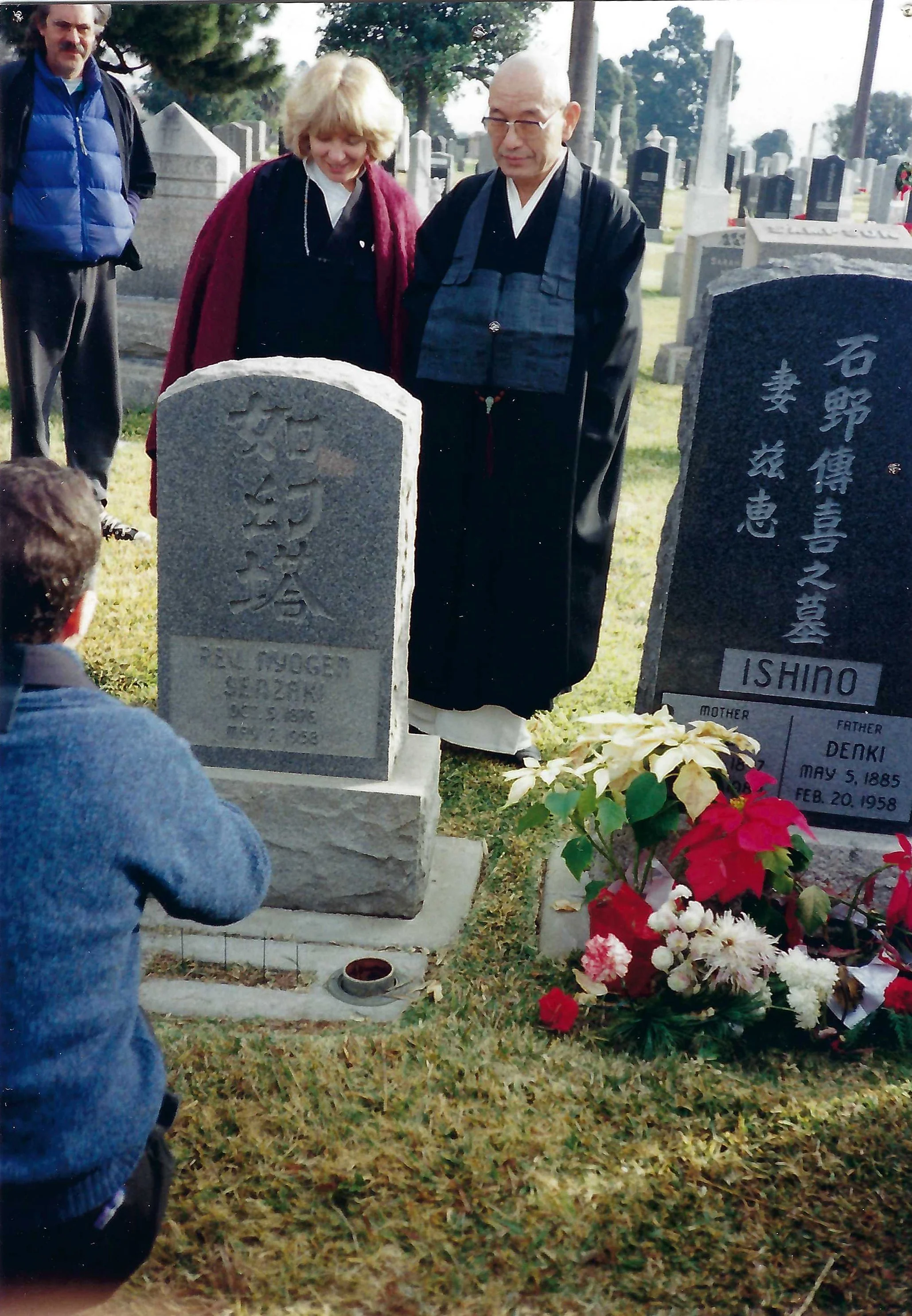 With Maezumi Roshi at the grave of Nyogen Senzaki (1876-1958)