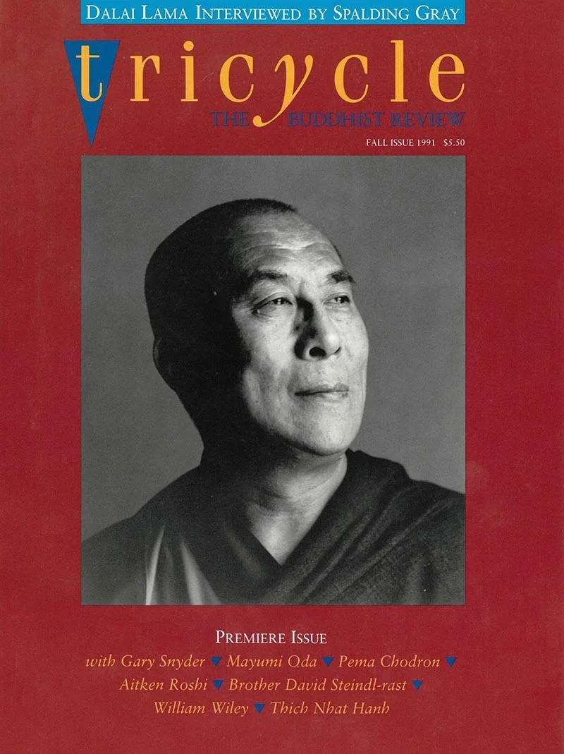 For the first cover, Frank Olinsky chose an improbable image of His Holiness the Dalai Lama... a three-quarter angle shot of the Dalai Lama, his head tilted back slightly and his face turned away from the camera. The image captured a timeless, layered serenity. He looks both more vulnerable than usual and more enigmatic.